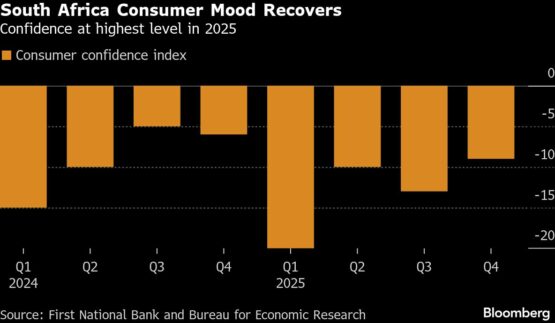 South African consumer sentiment advanced in the fourth quarter to the highest level for 2025, in an encouraging sign for household confidence heading into the holiday season.