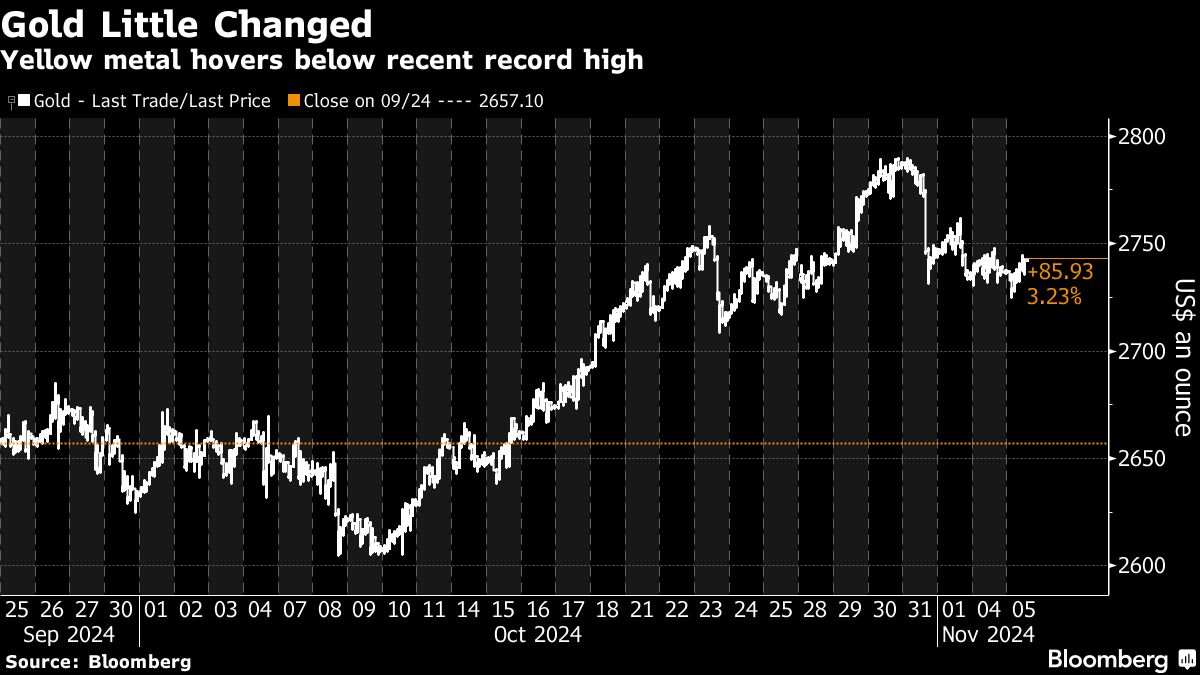 Bullion was near $2 740 an ounce, just shy of the all-time high set last week. While prices have been relatively stable so far on Tuesday, previous US elections have seen sharp swings. With polls suggesting a photo-finish result, the risk of a disputed outcome means that the vote count could drag on for days or even weeks.