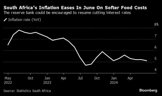 Consumer prices rose 5.1% in June from a year earlier, compared with 5.2% in the prior month, Pretoria-based Statistics South Africa said Wednesday in a statement on its website. That matched the median of 16 economists’ estimates in a Bloomberg survey.