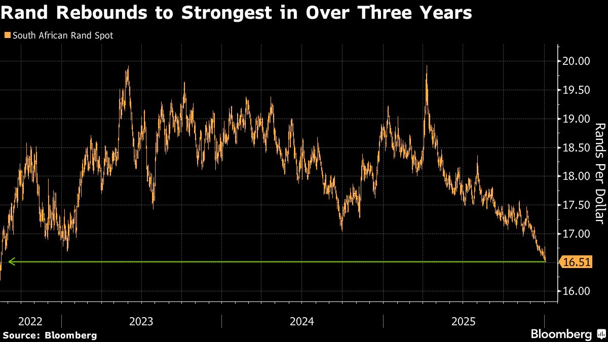 The rand rose as much as 0.6% to R16.50 against the dollar on Friday, outperforming most emerging-market peers. The currency appreciated 14% in 2025, its best year since 2009.