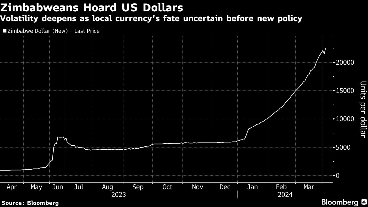 The southern African nation’s unstable currency risks sending the nation back into hyperinflation 15 years after its old local dollar had to be abandoned. The latest two Reserve Bank of Zimbabwe governors, John Mangudya and Gideon Gono, failed to bring order to the exchange rate despite multiple efforts. These included the launch of gold coins and gold-backed digital tokens under Mangudya’s watch, while Gono repeatedly slashed zeros off banknotes as hyper-inflation spiraled and topped 231 million percent in 2008.